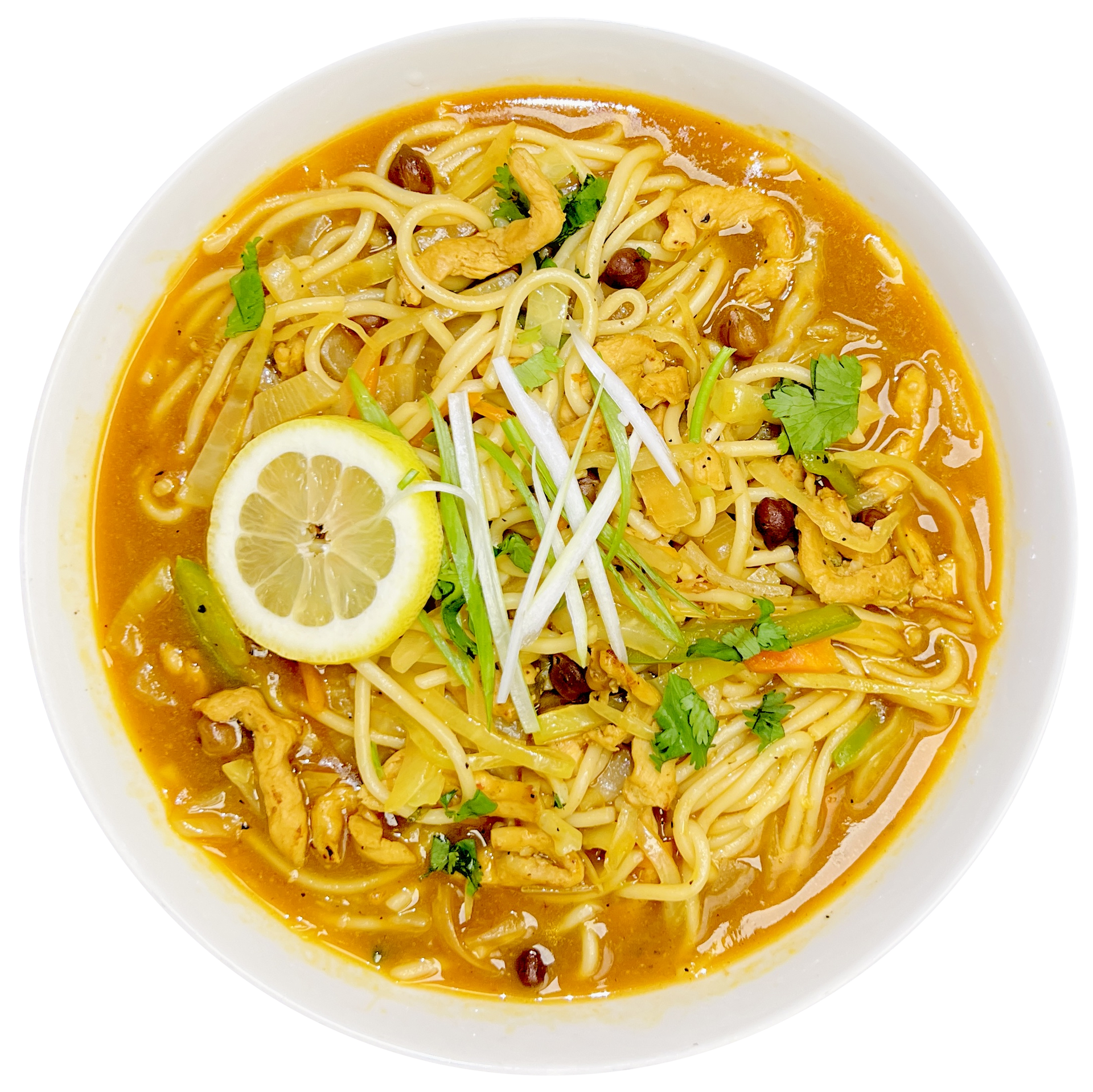 A noodle soup originating from the Himalayan region of Nepal serving the flavorful broth, typically made with vegetables, aromatic spices and your choice of protein.